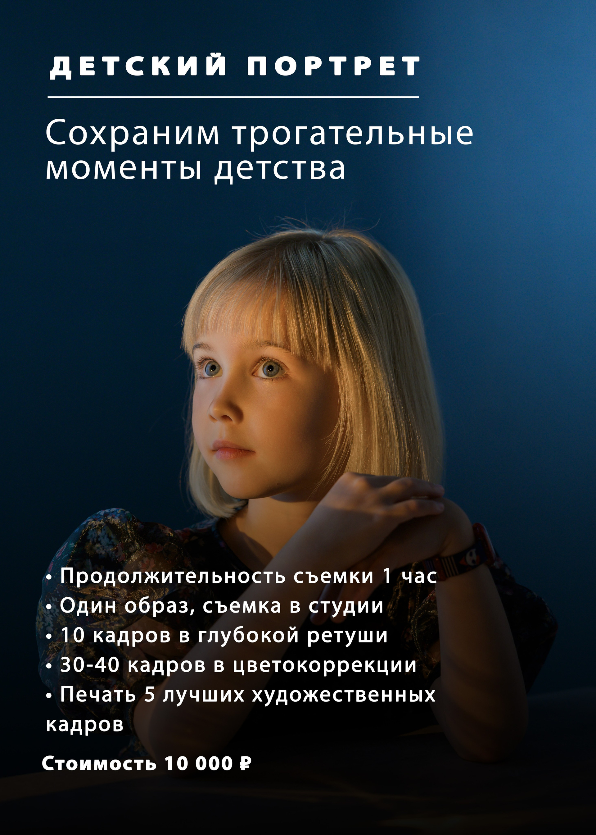 Классические, минималистические, драматические, голливудские, эмоциональные портреты мужчин, женщин и детей. А также экспериментальные творческие образы